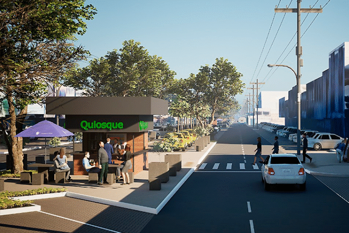 A Avenida Central do Núcleo Bandeirante vai ganhar calçadas mais largas e contínuas, rotas acessíveis, rampas nos principais pontos de travessia, estacionamentos reorganizados e espaços compartilhados entre pedestres e ciclistas. Áreas de permanência e quiosques também serão padronizados, com novas mesas, bancos, lixeiras e pergolados – estruturas de madeira ou metal que criam áreas cobertas.