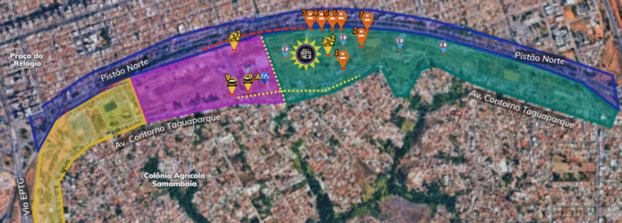 Para a realização do evento, os acessos à Avenida das Palmeiras e à área de concentração na Praça do Relógio serão bloqueados. Viaturas do Detran-DF acompanharão o percurso, monitorando pontos críticos e auxiliando pedestres, com o uso de cones e barreiras para organizar o trânsito no entorno.