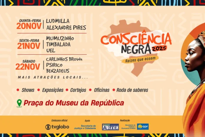 Com o tema Raízes que Conectam o Futuro, o Consciência Negra 2025 celebra ancestralidade, promove diálogos sobre identidade e coloca a população negra no centro da formação cultural brasileira. A programação integra música, moda, artes visuais, literatura, gastronomia, debates, infância e empreendedorismo, consolidando o evento como um marco anual da agenda cultural do DF.